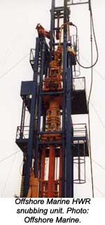 Besides the ability to protect the formation during workover or completion operations, hydraulic workover units can offer such significant economic advantages that they are often used even when the well is not pressured. "Onshore, because you are competing with standard workover, snubbing units are used for workovers on wells that you don't want to kill and damage the formation or for some reason are difficult to kill," Flak said. "But offshore, hydraulic workovers are done with and without pressure on the well because they are cheaper and faster to rig up than a platform rig or a jackup that is cantilevered over the platform. And today it is sometimes hard to find a workover unit offshore when you need one. So the economics work offshore whether you want to kill the well or not."