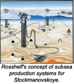 Development envisages the construction of two ice-resistant drilling platforms, four submarine units with 12 well clusters, submarine in-field pipelines and cable wires, 30,000-ton submarine storage tanks for each drilling platform for condensate, with a terminal for loading tankers and a 635-km main pipeline to the Kola Peninsula coast.