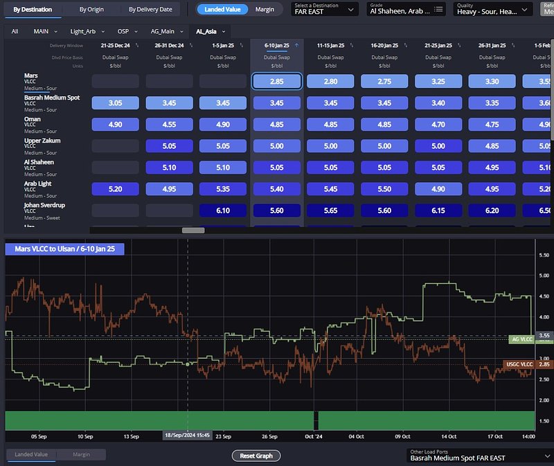 On medium grades, spot Basrah has come under a lot of pressure into Europe and has priced out JS entirely, which itself has seen FOB premia rise after clearing barrels to Asia (JS now looks closed to East, so FOB premia might have to come off soon).