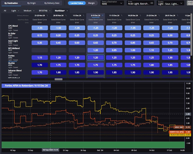 This means plenty pressure in NWE, where Azeri, CPC and Es Sider are still arbing effectively vs Forties.